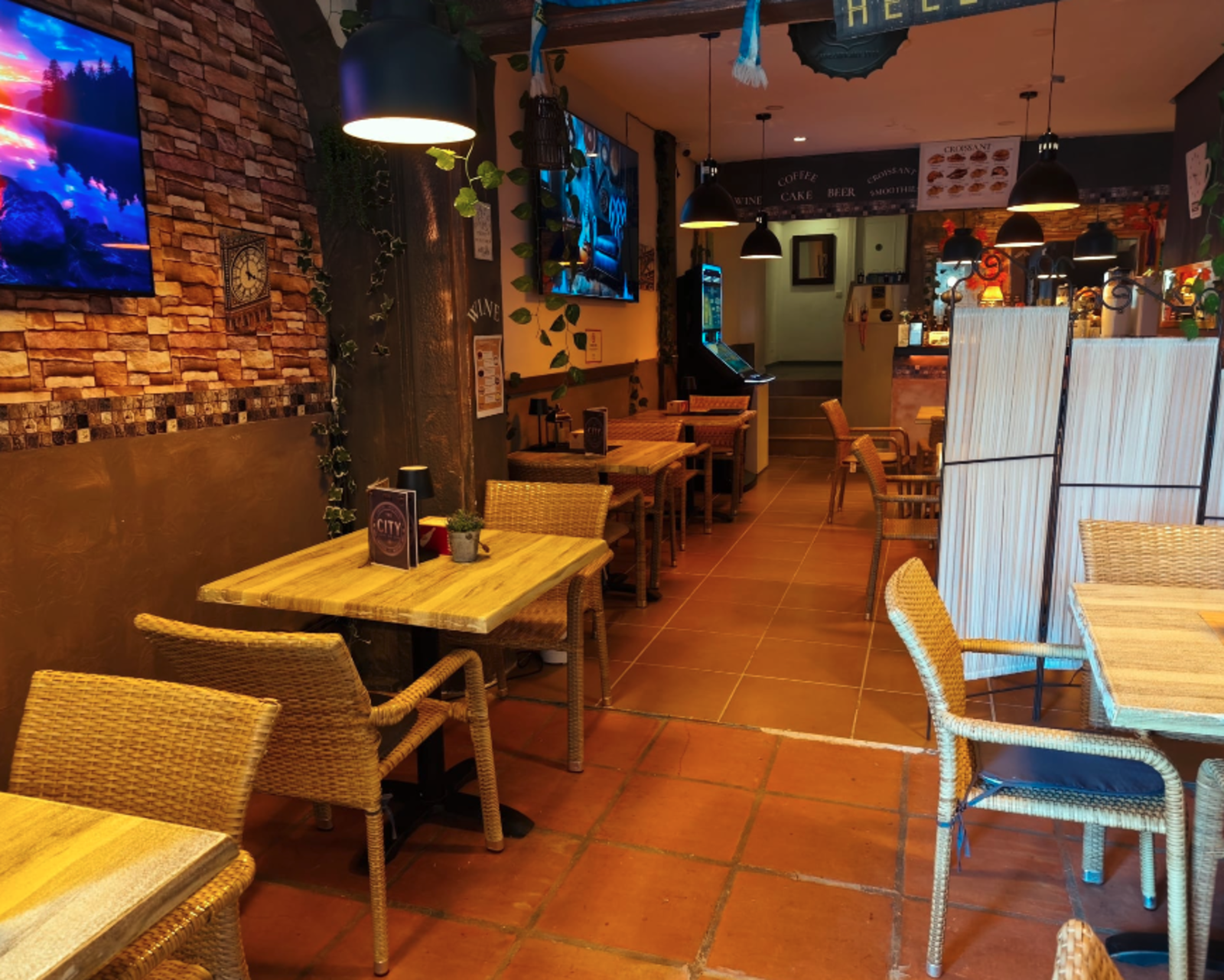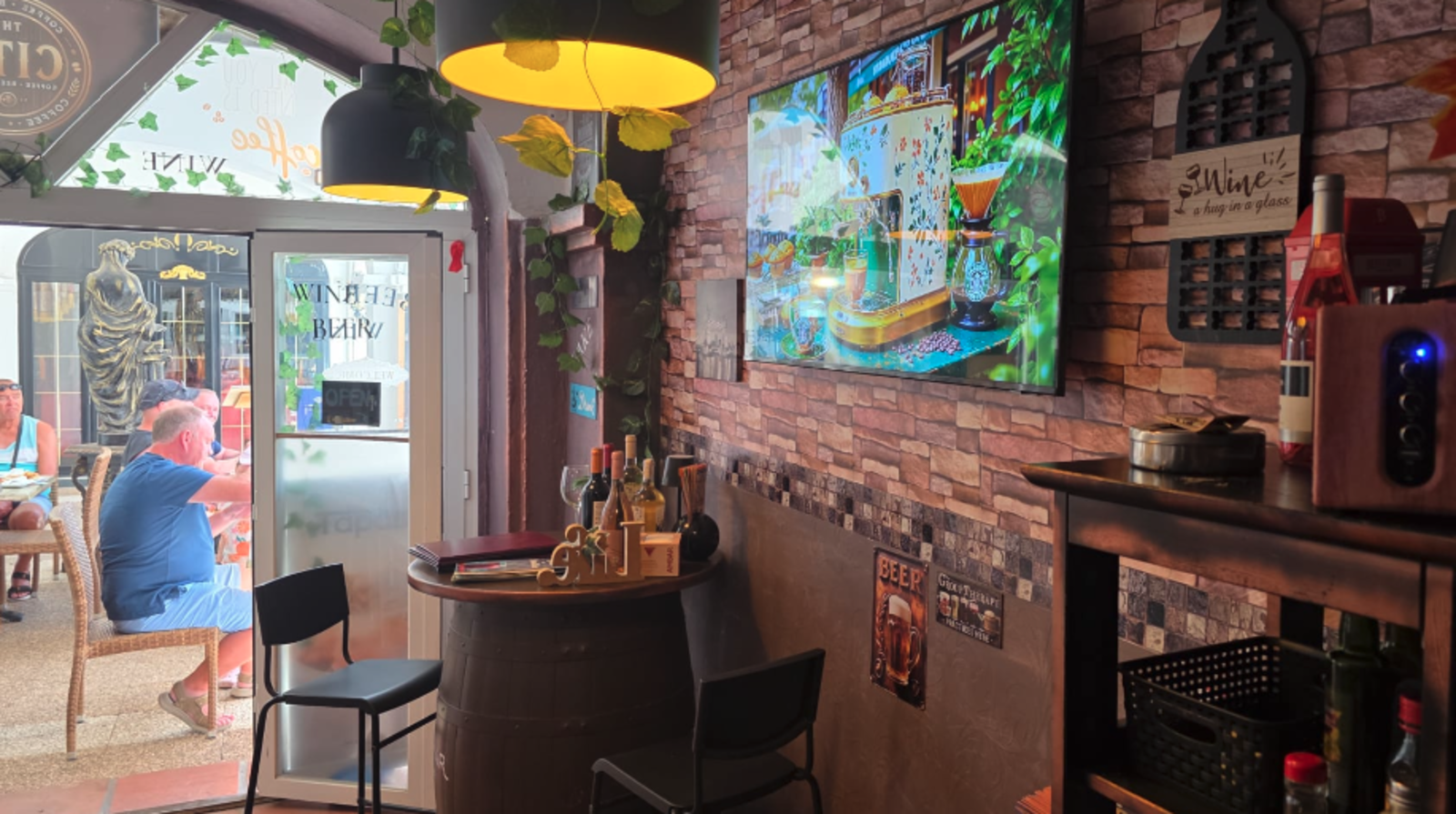 Sunny outdoor terrace with excellent visibility.