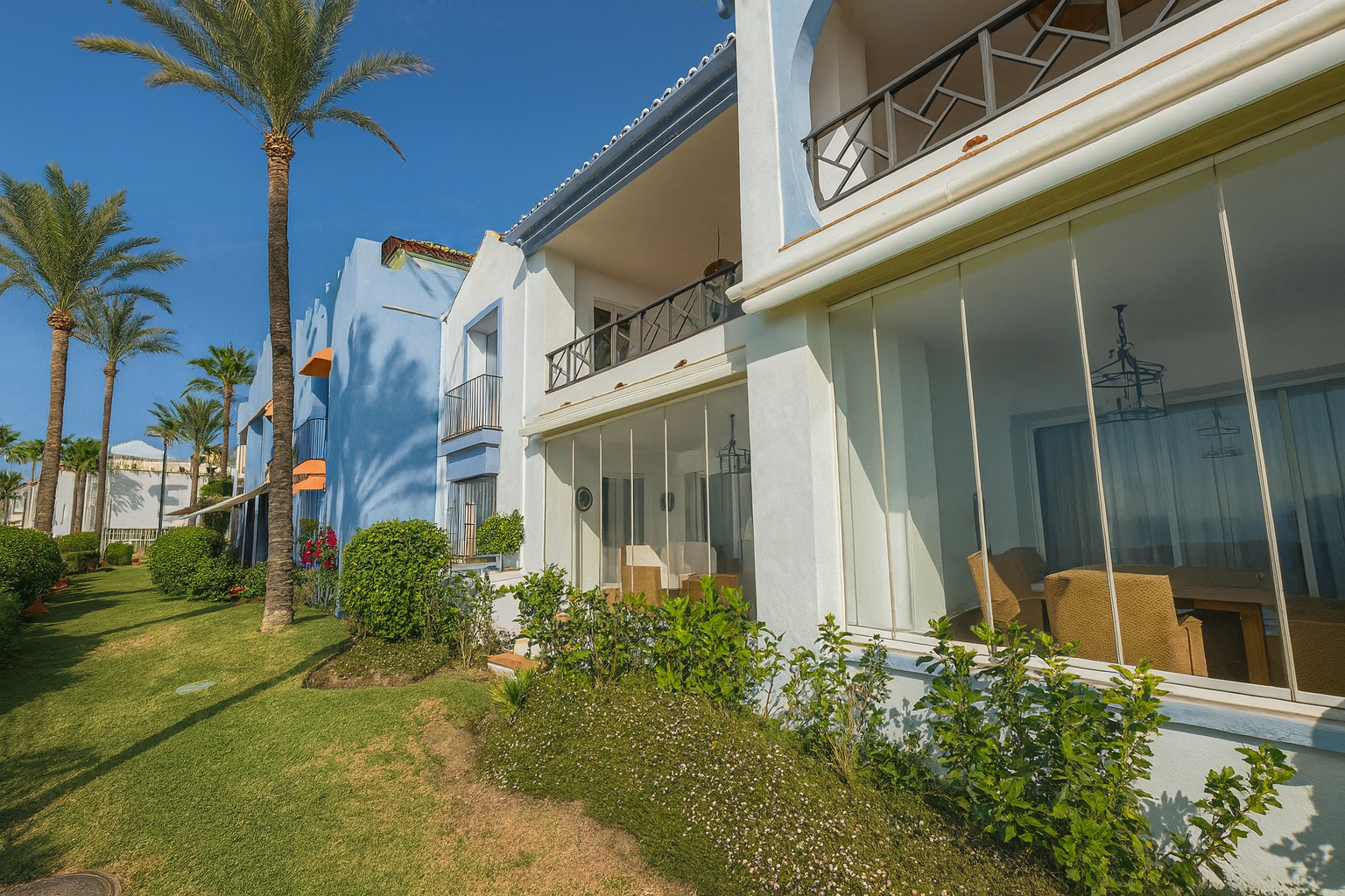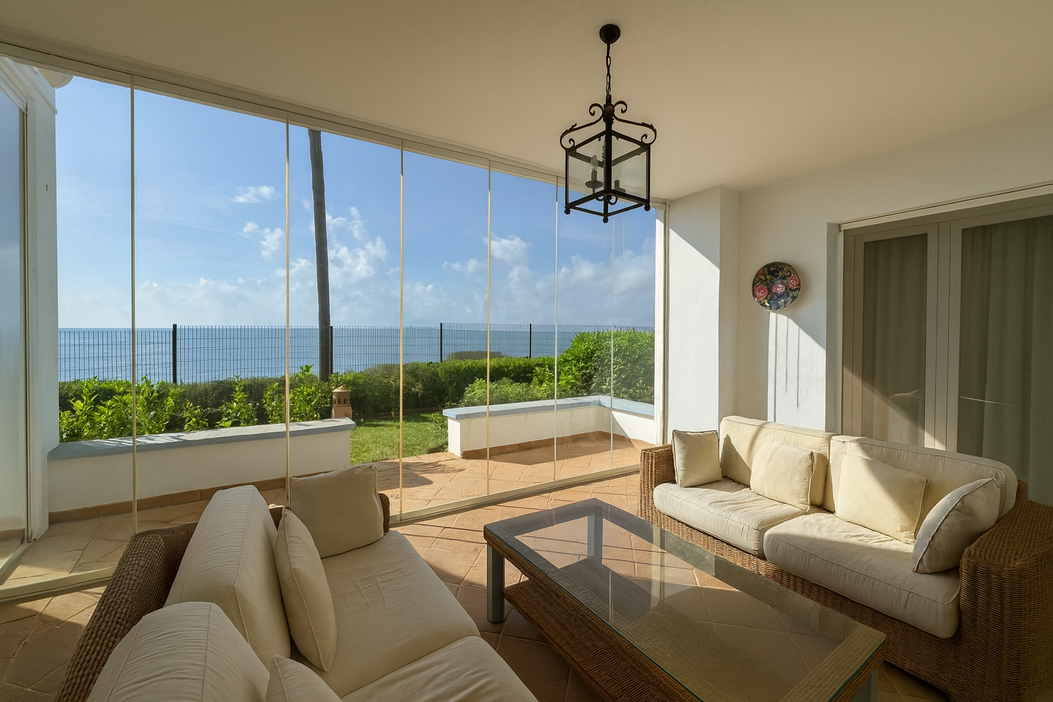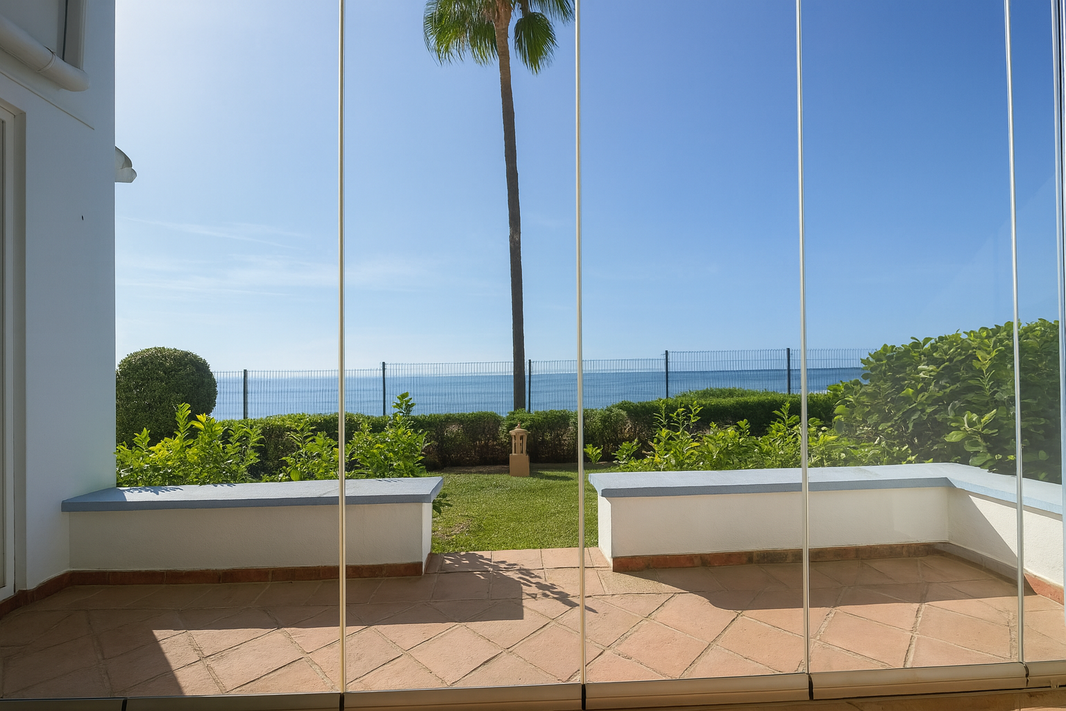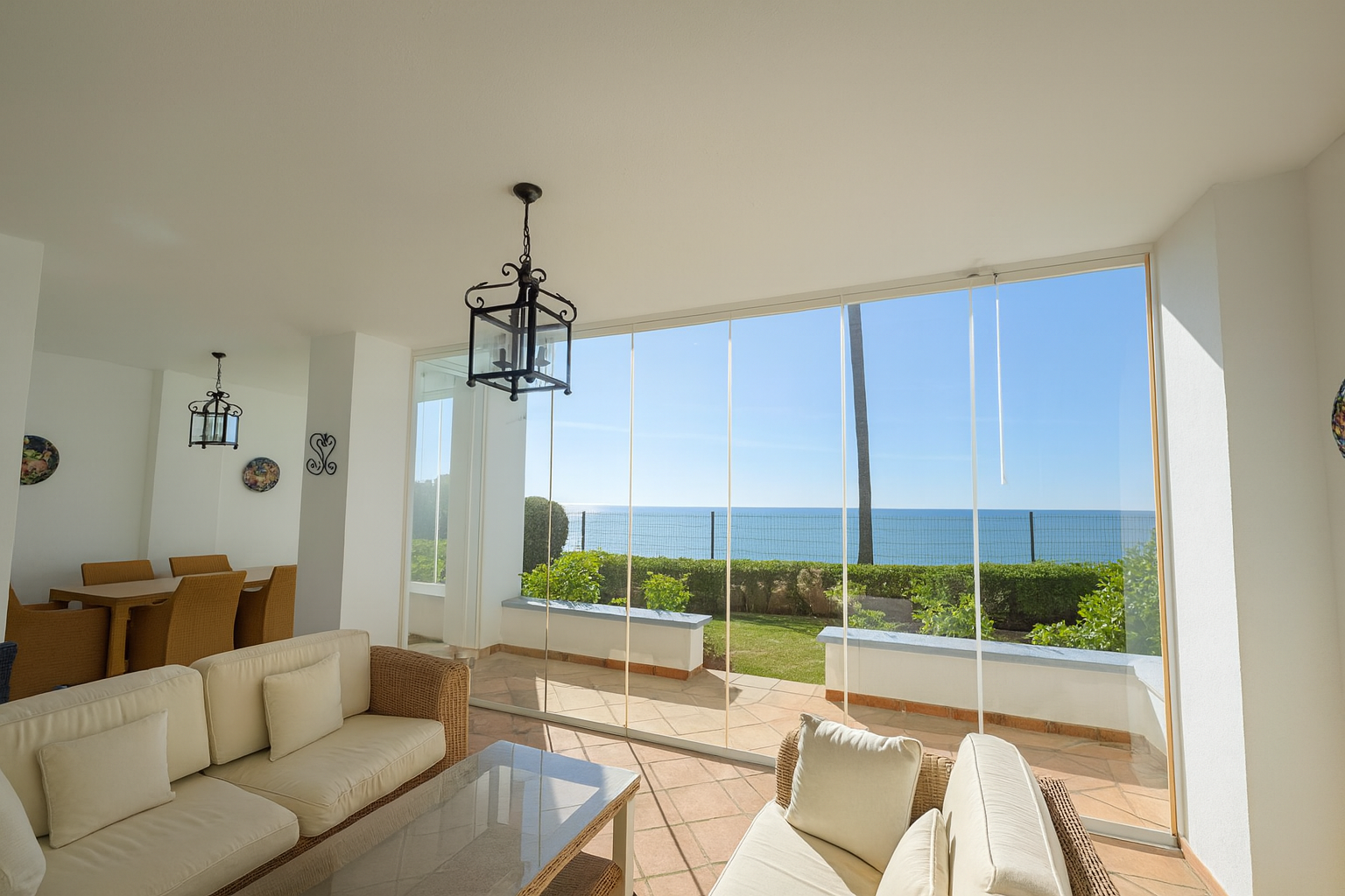 Experience beachfront luxury in this beautiful 3-bedroom ground-floor apartment located in the prestigious La Perla de la BahĂa development on Casares Playa.