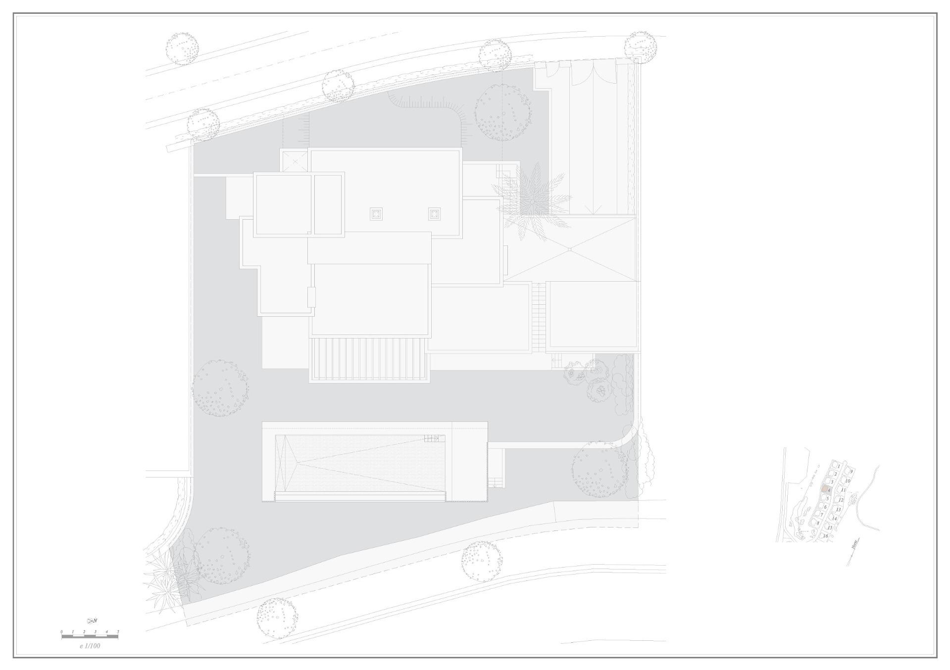 The inviting ground floor encompasses a spacious living, dining and kitchen area, adorned with high ceilings and abundant windows that bathe the space in natural light. The modern kitchen comes fully equipped with top-of-the-line Gaggenau appliances. Two guest rooms, with direct access to the garden, are thoughtfully located on the ground floor.